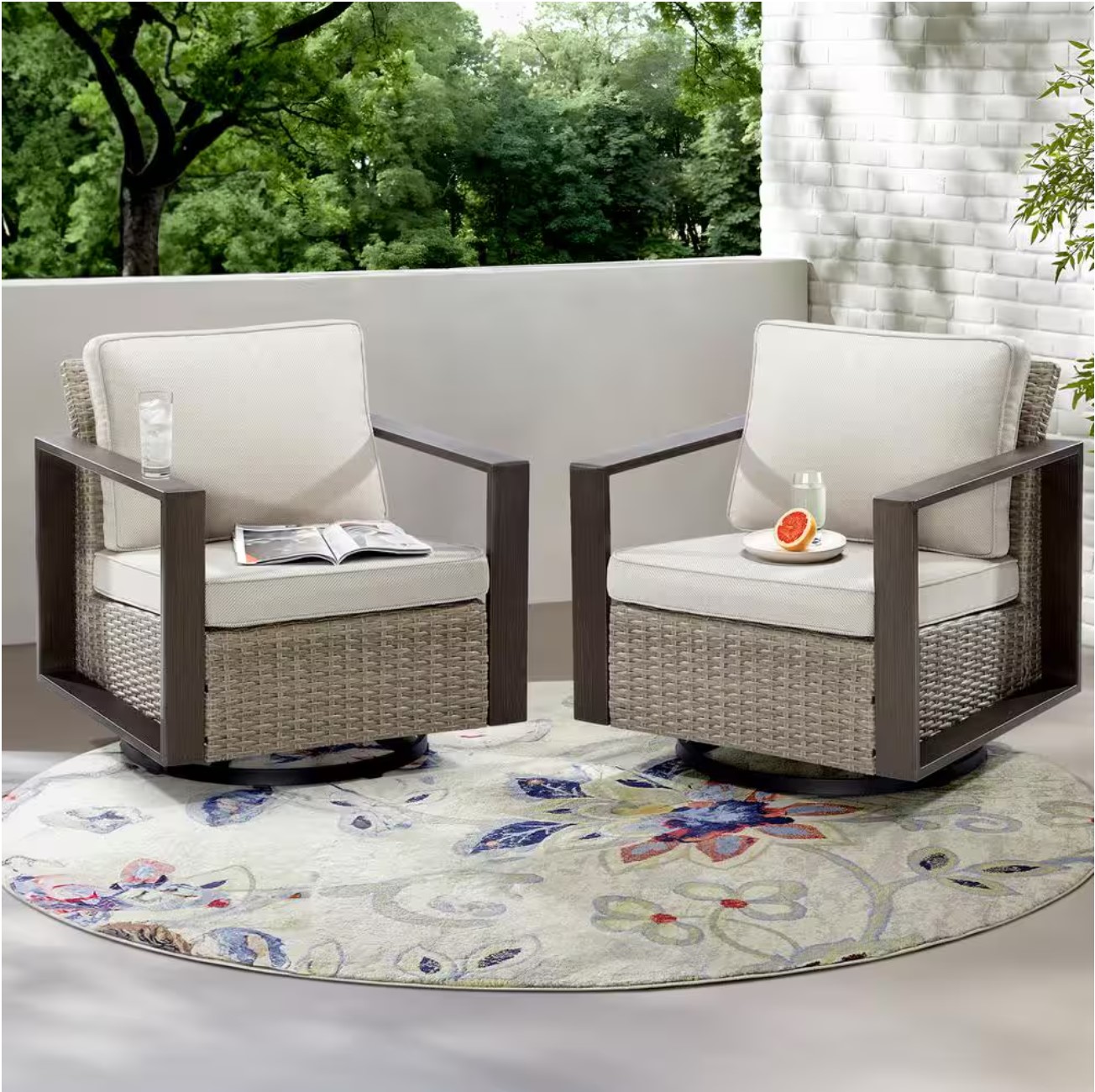 Their neutral tones and clean silhouette ensure seamless integration with a wide range of décor styles—from modern and contemporary to casual and transitional. Use them as a sleek addition to your outdoor dining set, a stylish touch to your entertainment space, or even as statement chairs in your covered patio or sunroom. Wherever they’re placed, they deliver comfort, movement, and a polished, purposeful look.