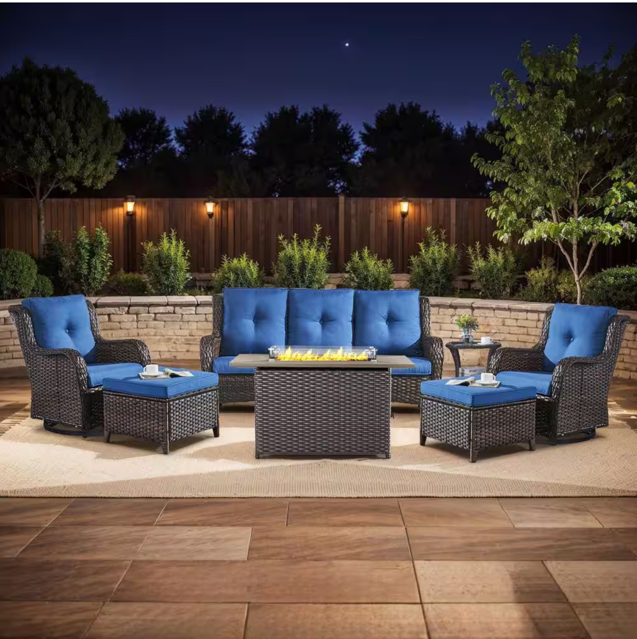 - Versatile design: rich brown wicker paired with vibrant blue cushions creates a stylish and inviting look for any outdoor space